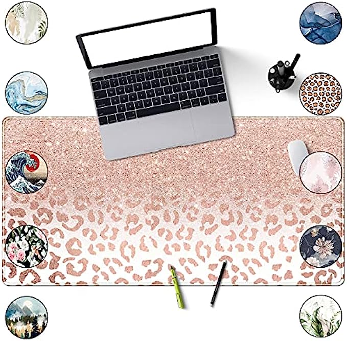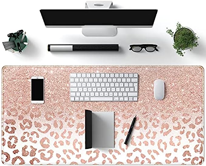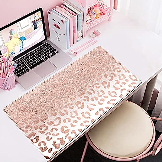 Desk Mat XXL Mouse pad, Pink Rose Gold Leopard Print Office Supplies and Accessories Decor Office for Women 31.5X15.75in,Stitched Edges Smooth and Non-Slip Rubber Bottom, Large Mouse pad for Desk