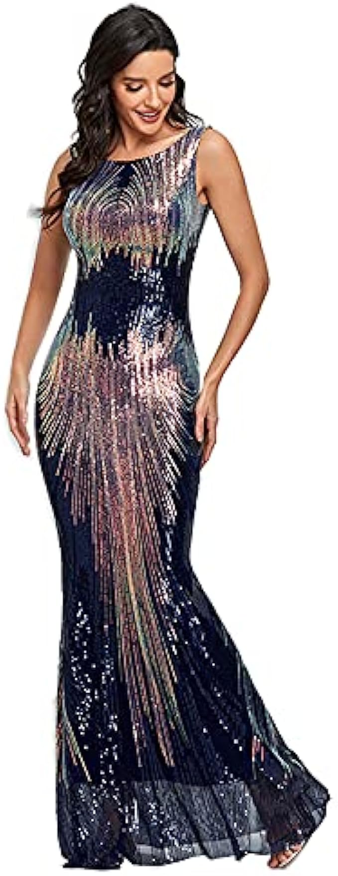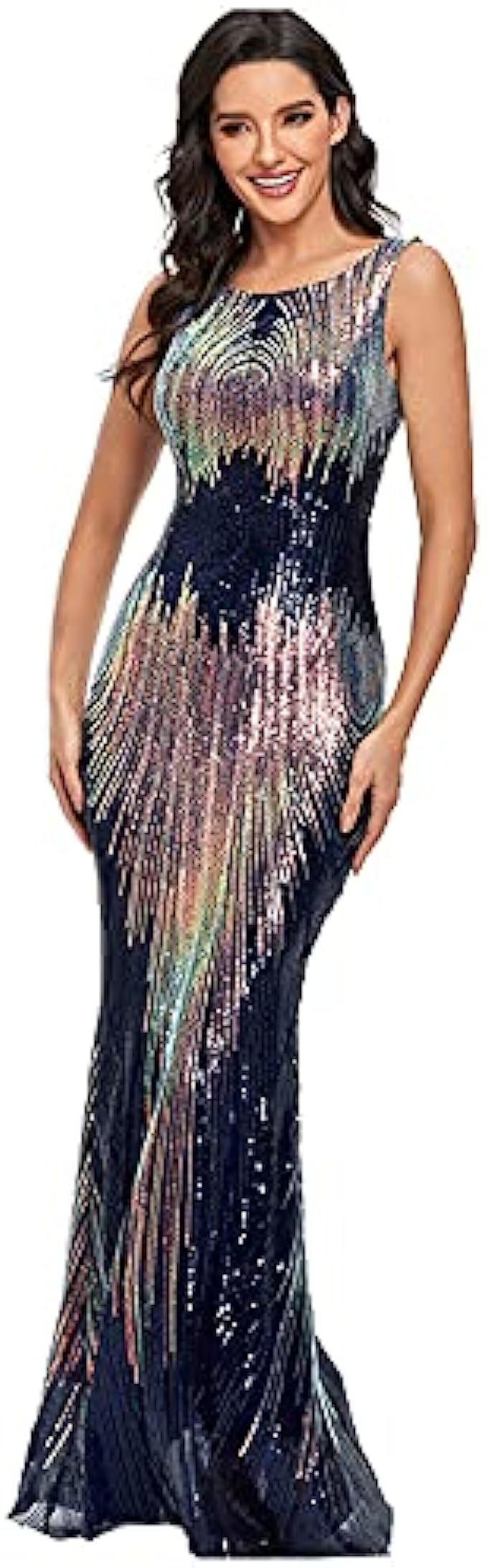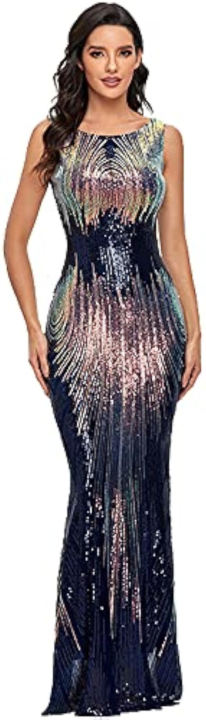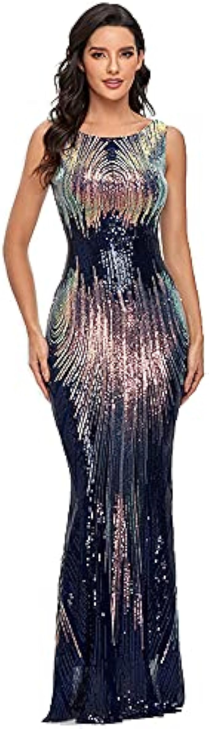 LiveZou Women’s Double V-Neck Sequined Evening Party Maxi Dress