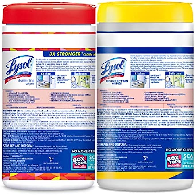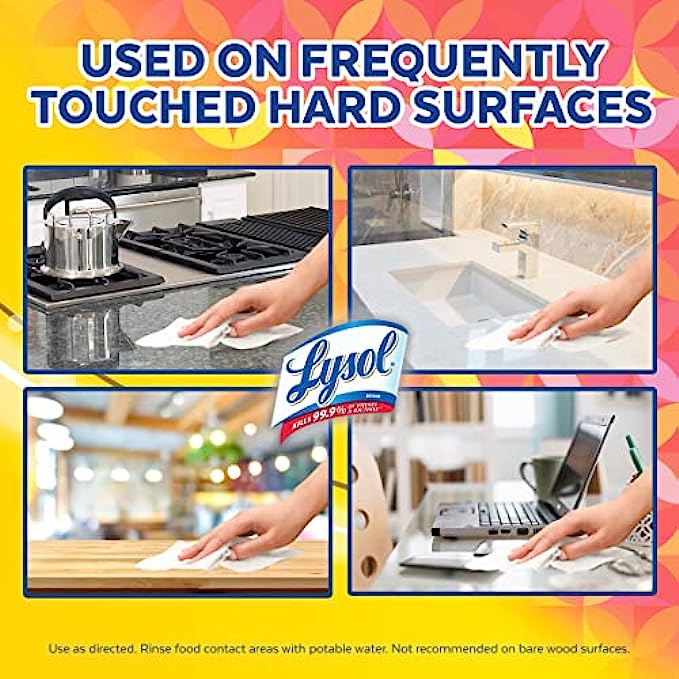 • DISINFECTING WIPES FOR CLEANING: Disinfect and deodorize with the fresh smells of Lemon & Lime Blossom and Mango & Hibiscus Lysol Disinfecting Wipes; Safely wipe down spills and remove allergens, including pet dander, dust mites, and pollen​